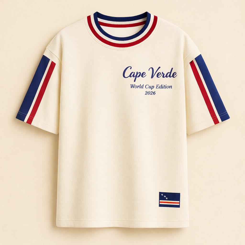 Deze tee is ontworpen als ode aan Kaapverdië’s identiteit, diaspora en culturele trots, speciaal voor het WK 2026.